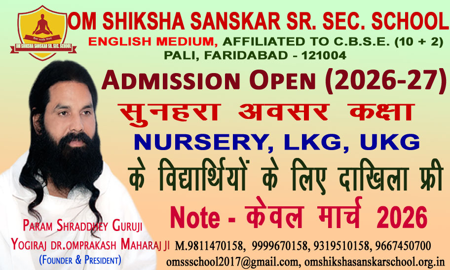 Om Shiksha Sanskar School, located at VPO Pali in Faridabad, Haryana, is a progressive educational institution committed to nurturing young minds through a balanced combination of modern education and traditional values. The school is affiliated with the Central Board of Secondary Education (CBSE) and provides quality education from primary to senior secondary levels.